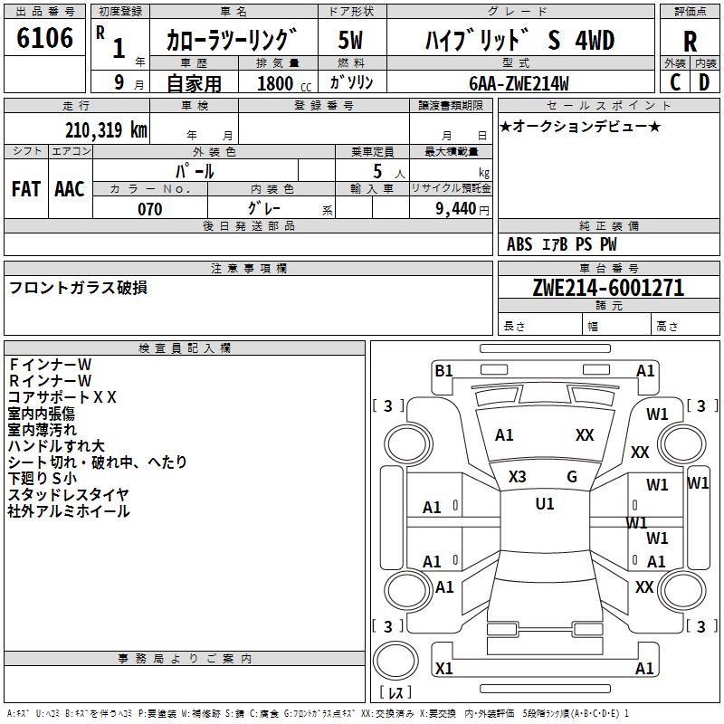 TOYOTA COROLLA WAGON HYBRID S 4WD - лот 6106