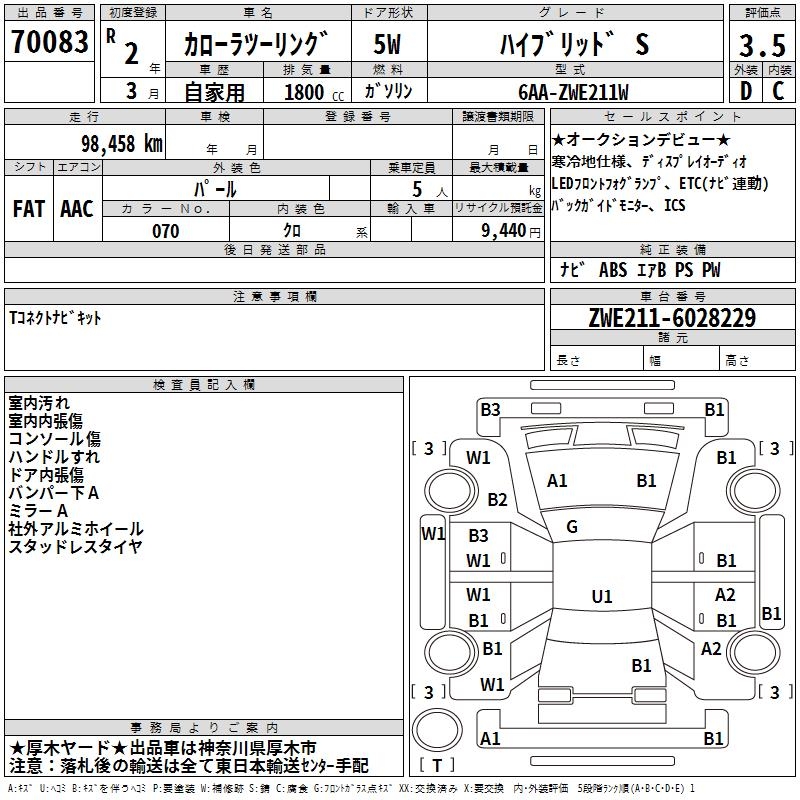TOYOTA COROLLA WAGON HYBRID S - лот 70083
