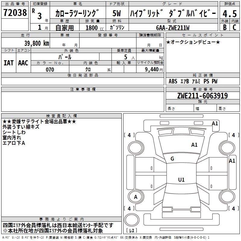 TOYOTA COROLLA WAGON HYBRID DOUBLE BAI BE - лот 72038