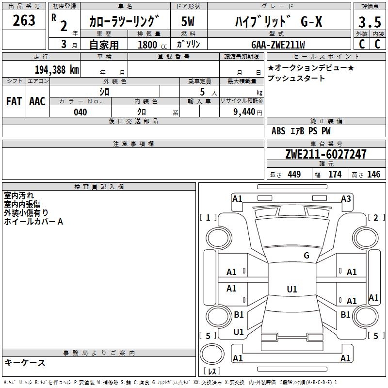 TOYOTA COROLLA WAGON HYBRID G-X - лот 263