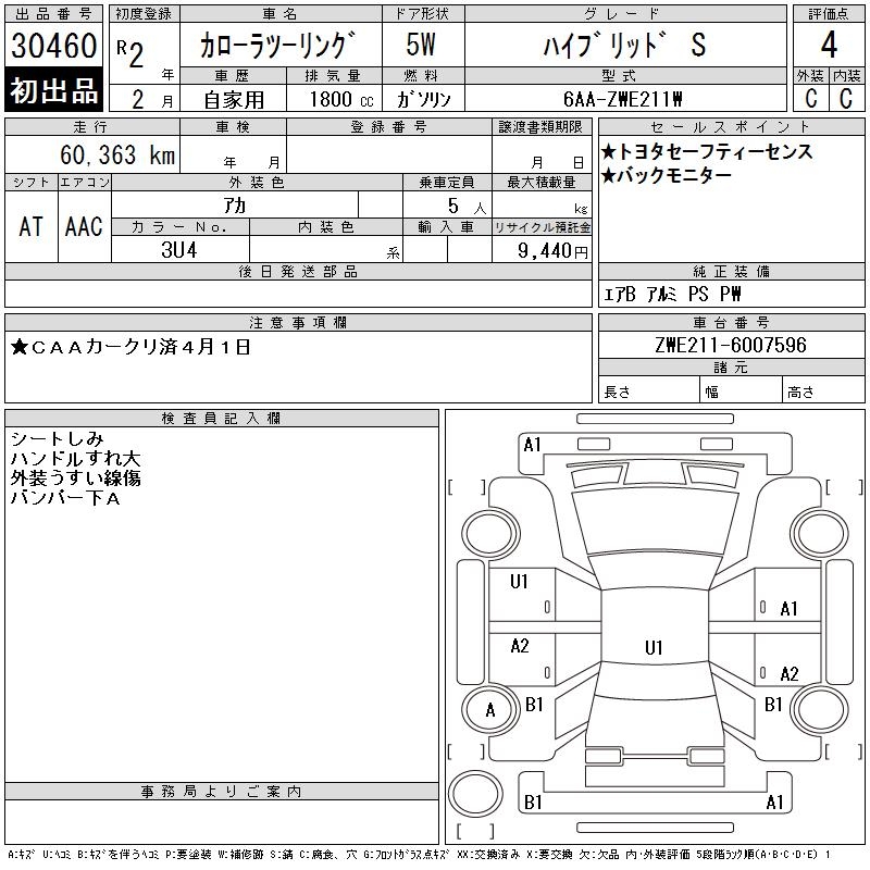 TOYOTA COROLLA WAGON HYBRID S - лот 30460