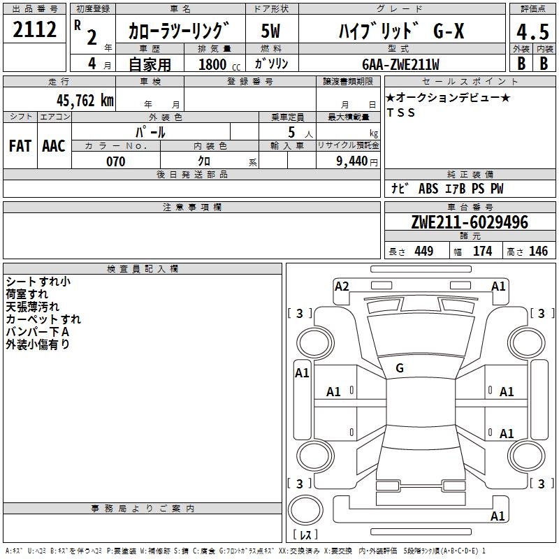 TOYOTA COROLLA WAGON HYBRID G-X - лот 2112