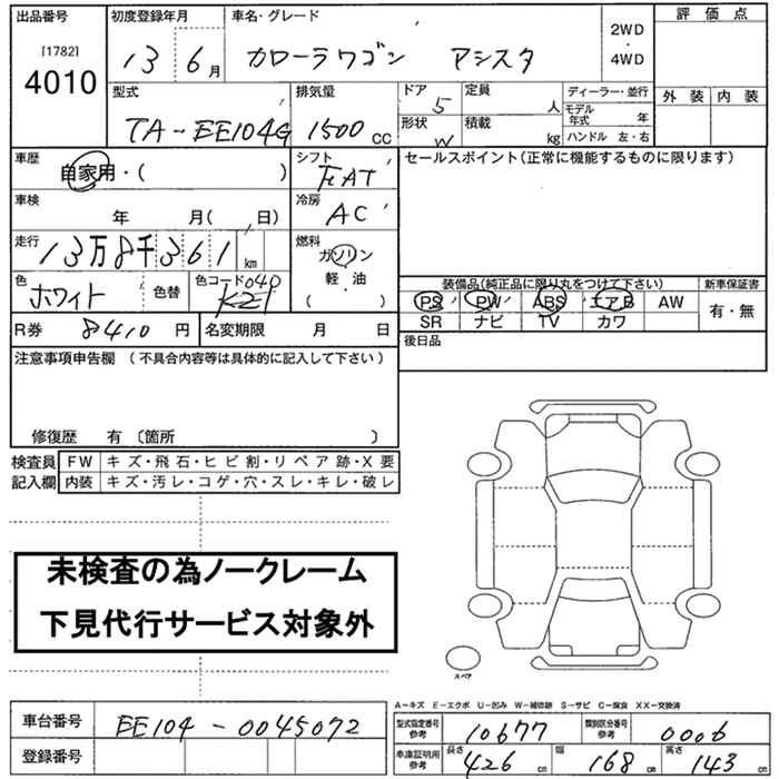 TOYOTA COROLLA WAGON ASSISTOR - лот 4010