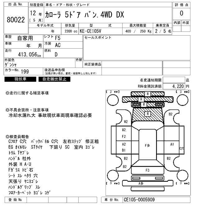 TOYOTA COROLLA VAN.4WD - лот 80022