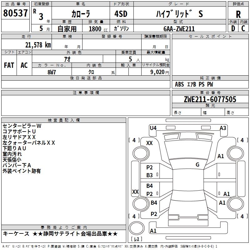 TOYOTA COROLLA HYBRID S - лот 80537
