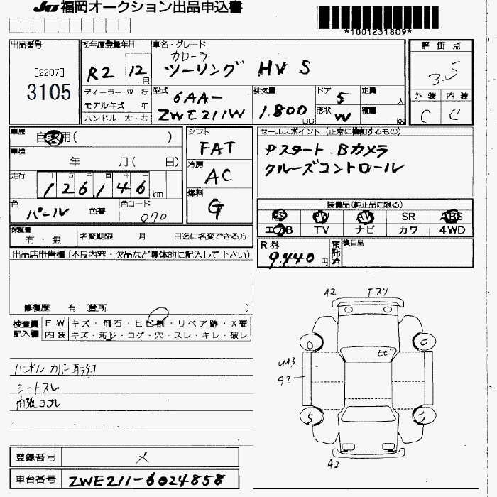 TOYOTA COROLLA TOURING HYBRID S - лот 3105