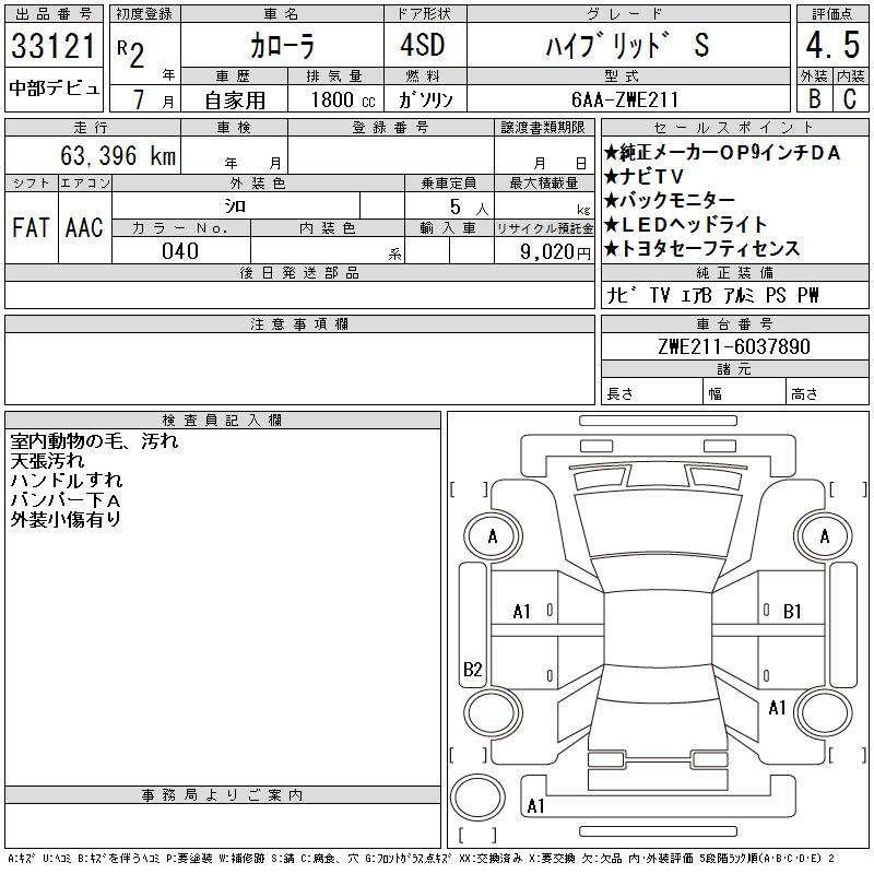 TOYOTA COROLLA HYBRID S - лот 33121