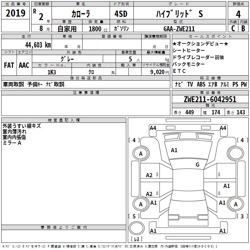 TOYOTA COROLLA HYBRID S - лот 2019