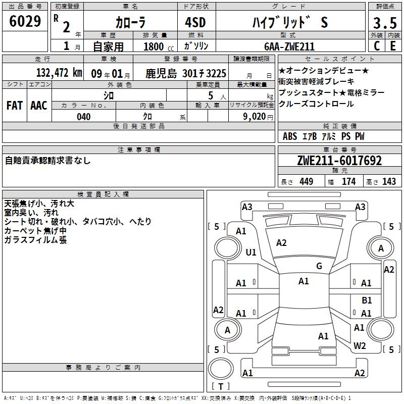 TOYOTA COROLLA HYBRID S - лот 6029