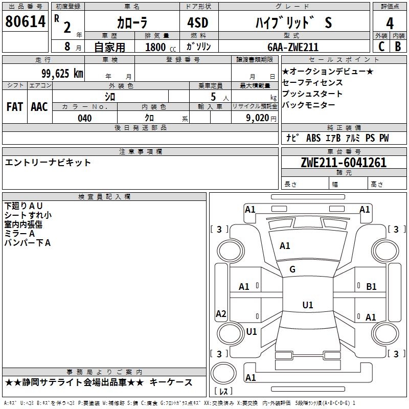 TOYOTA COROLLA HYBRID S - лот 80614
