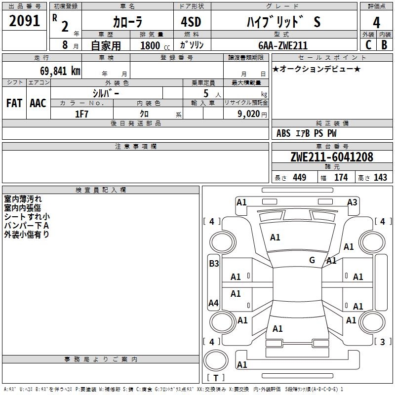 TOYOTA COROLLA HYBRID S - лот 2091