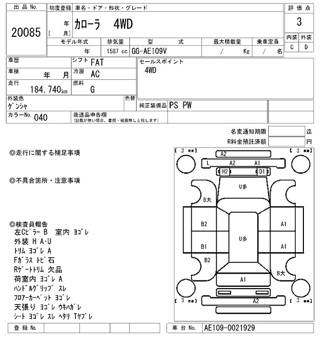 TOYOTA COROLLA 4WD - лот 20085