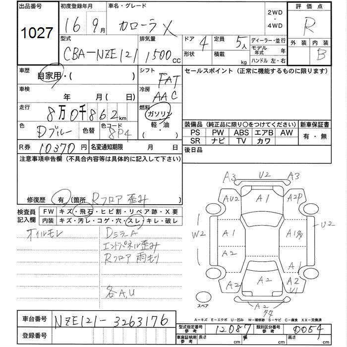 TOYOTA COROLLA X - лот 1027