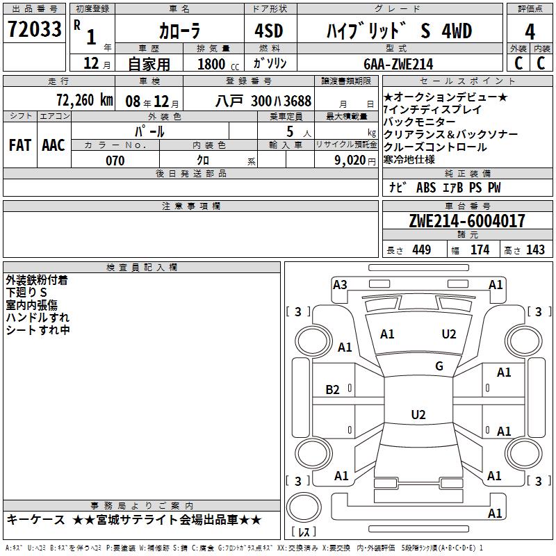 TOYOTA COROLLA HYBRID S 4WD - лот 72033