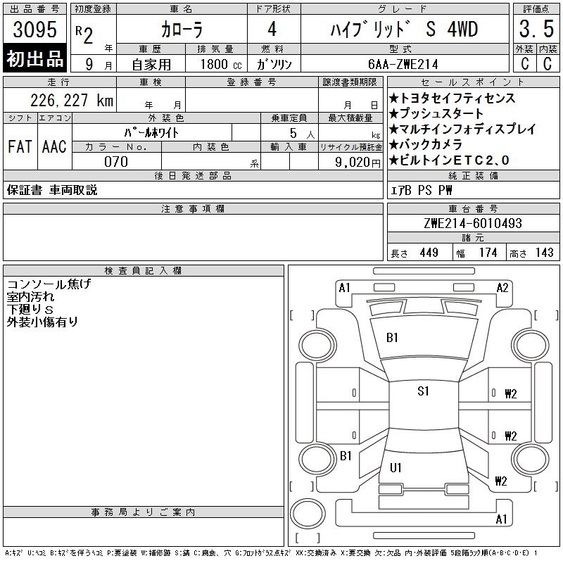 TOYOTA COROLLA HYBRID S 4WD - лот 3095