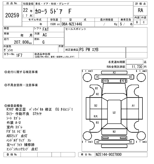 TOYOTA COROLLA F - лот 20259