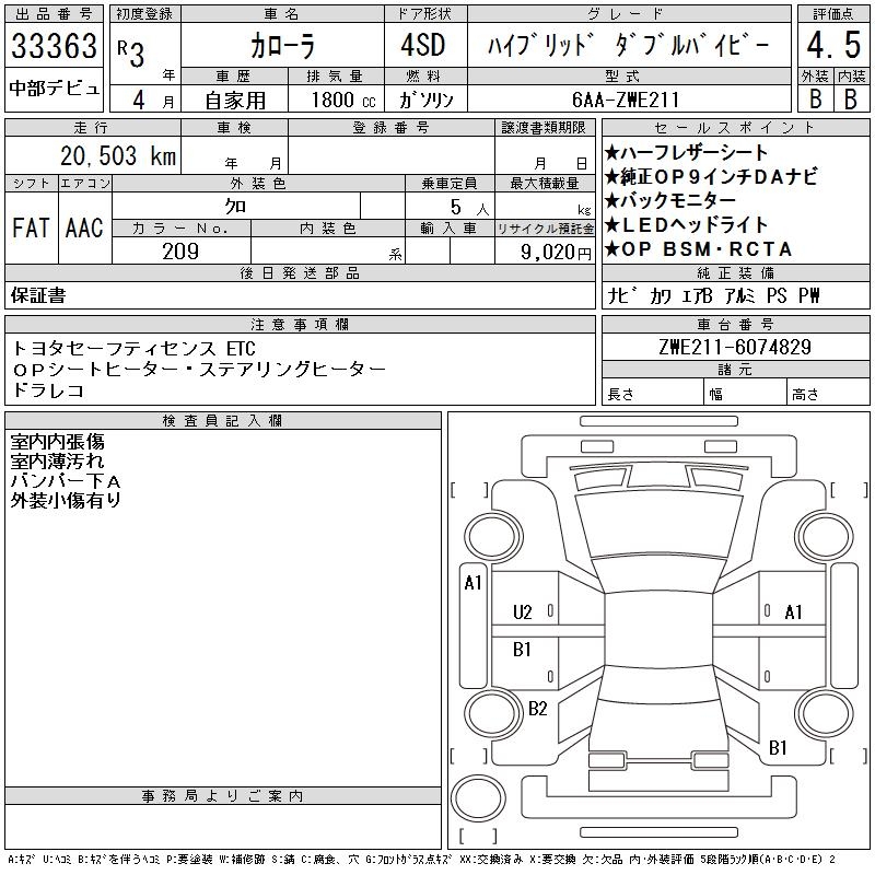 TOYOTA COROLLA HYBRID DOUBLE BAI BE - лот 33363