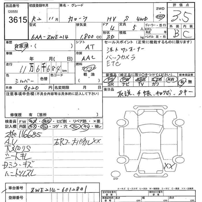 TOYOTA COROLLA 4WD HYBRID S - лот 3615