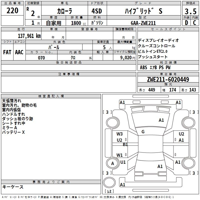 TOYOTA COROLLA HYBRID S - лот 220