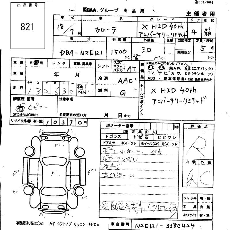 TOYOTA COROLLA - лот 821