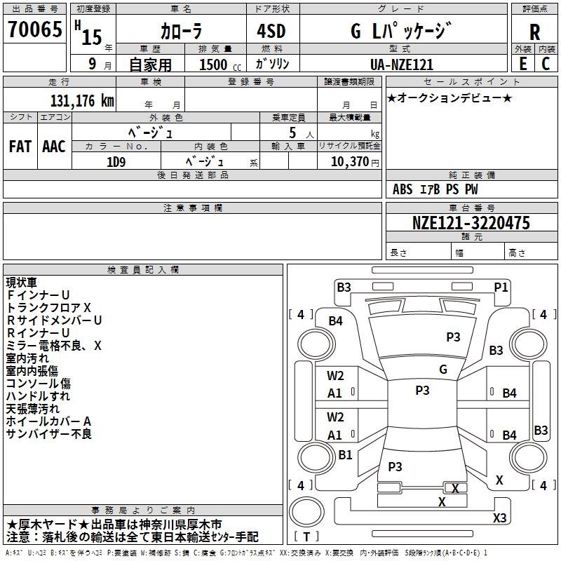 TOYOTA COROLLA - лот 70065