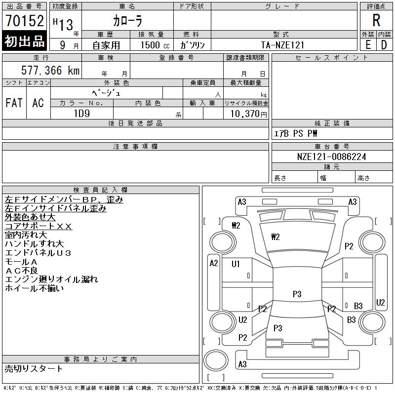 TOYOTA COROLLA - лот 70152