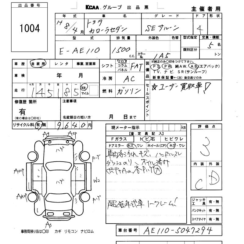 TOYOTA COROLLA - лот 1004