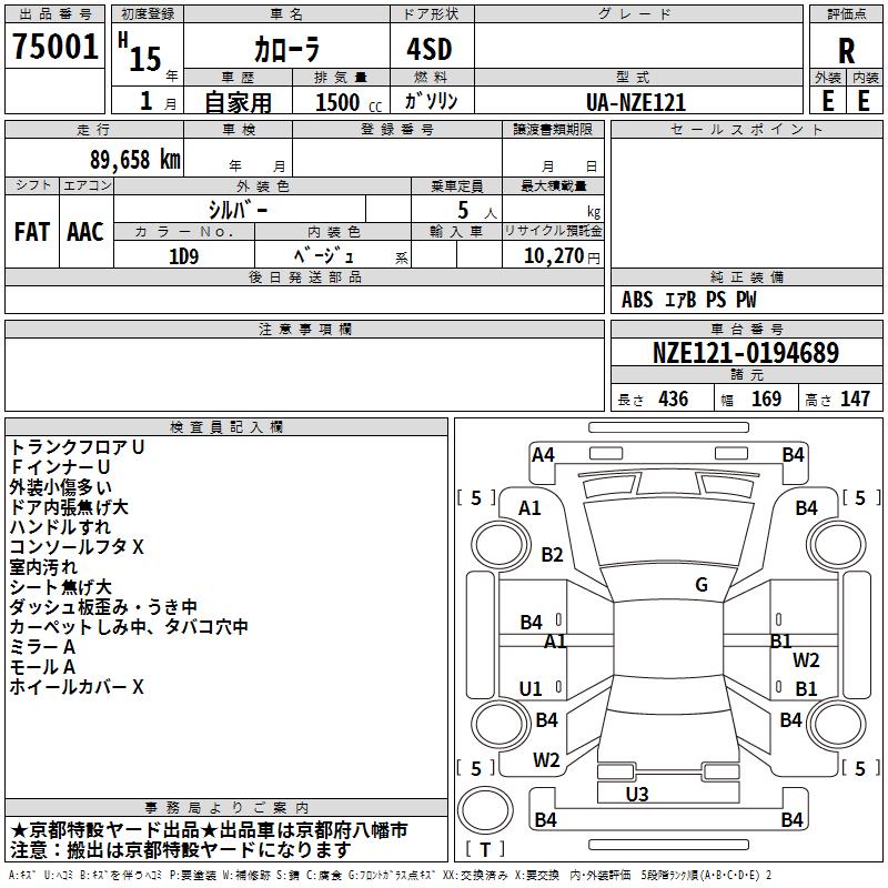 TOYOTA COROLLA - лот 75001