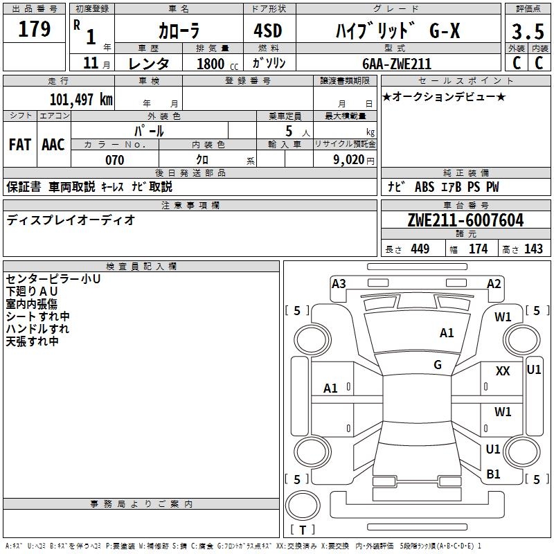 TOYOTA COROLLA hybrid G-X - лот 179
