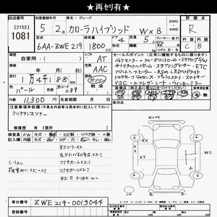TOYOTA COROLLA hybrid WxB - лот 1081