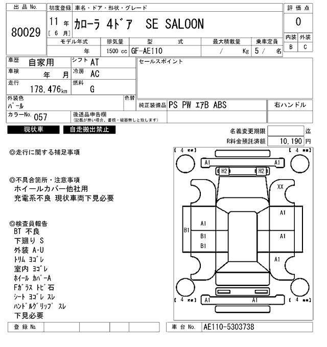 TOYOTA COROLLA - лот 80029