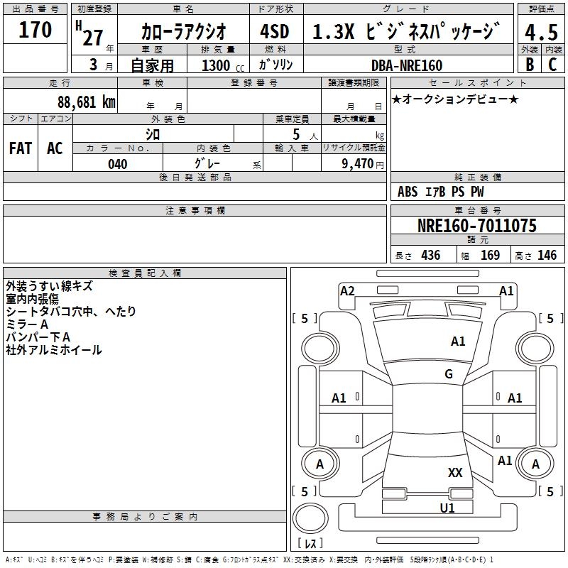 TOYOTA COROLLA AXIO - лот 170