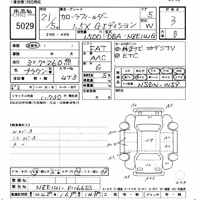 TOYOTA COROLLA FIELDER - лот 5029