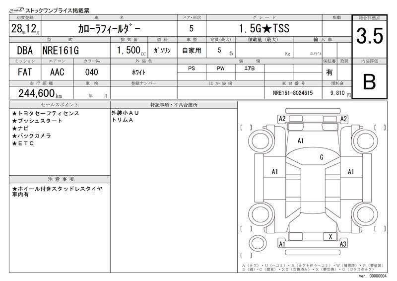 TOYOTA COROLLA FIELDER - лот 19566