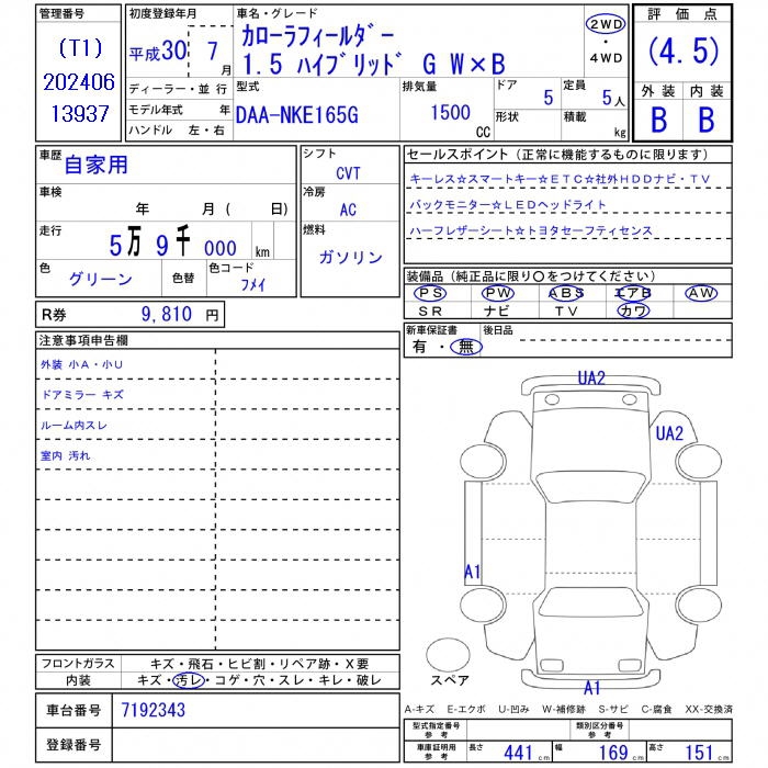 TOYOTA COROLLA FIELDER - лот 35103