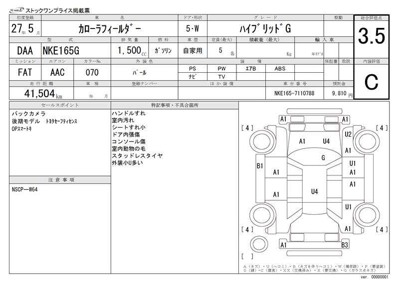 TOYOTA COROLLA FIELDER - лот 20736