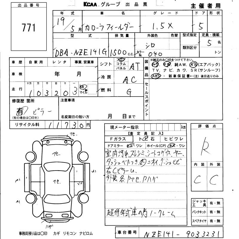 TOYOTA COROLLA FIELDER - лот 771