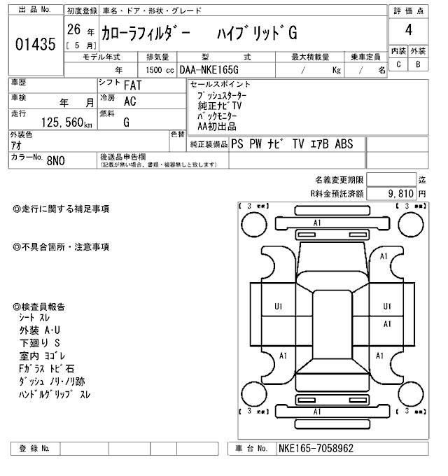 TOYOTA COROLLA FIELDER - лот 1435