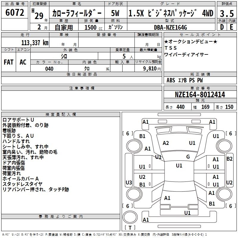 TOYOTA COROLLA FIELDER - лот 6072