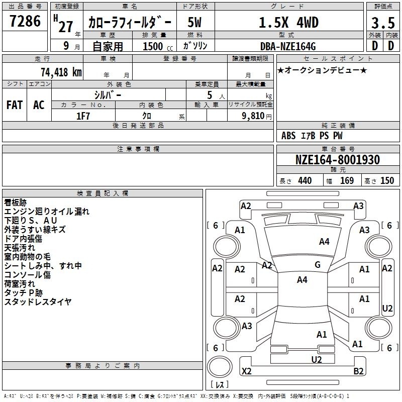 TOYOTA COROLLA FIELDER - лот 7286