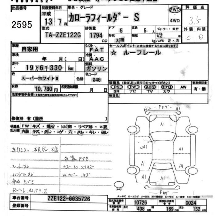 TOYOTA COROLLA FIELDER - лот 2595