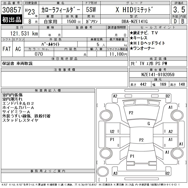 TOYOTA COROLLA FIELDER - лот 30857