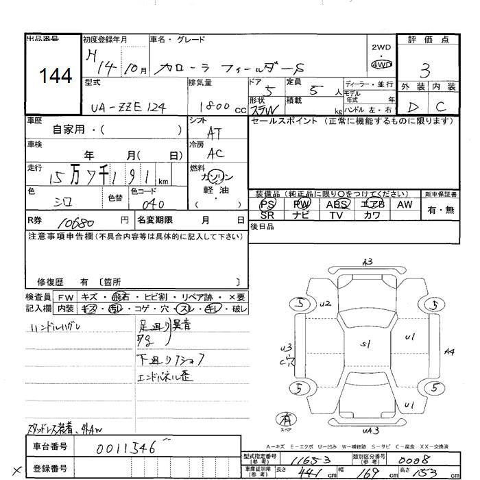 TOYOTA COROLLA FIELDER - лот 144
