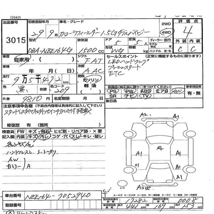 TOYOTA COROLLA FIELDER - лот 3015