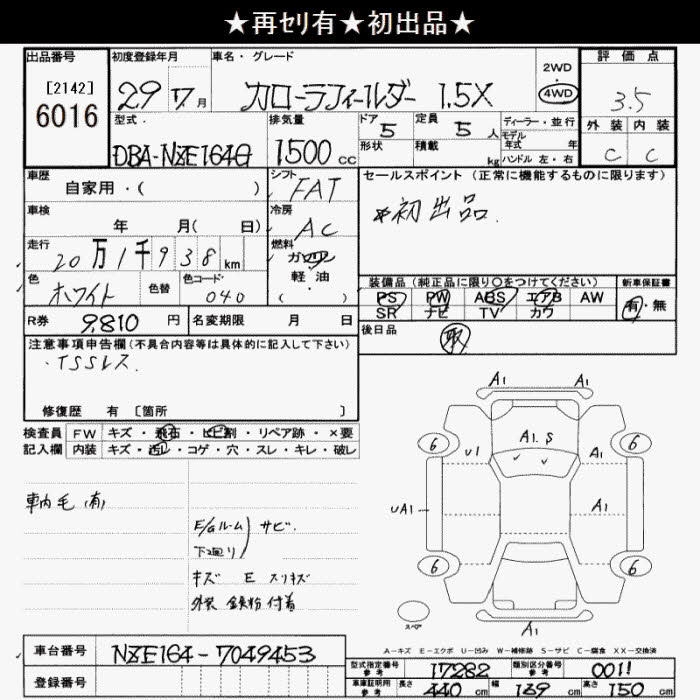 TOYOTA COROLLA FIELDER - лот 6016