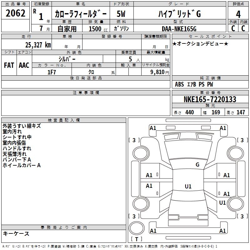 TOYOTA COROLLA FIELDER - лот 2062