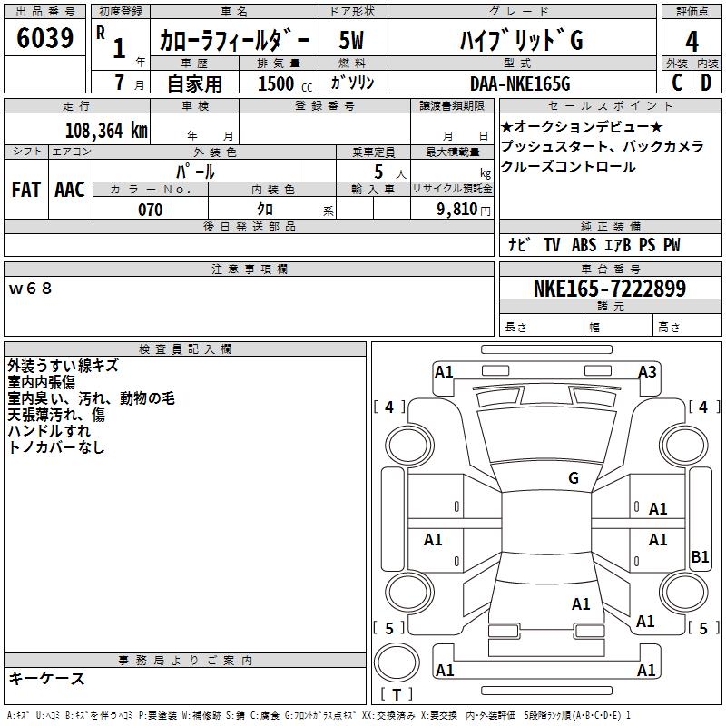 TOYOTA COROLLA FIELDER - лот 6039