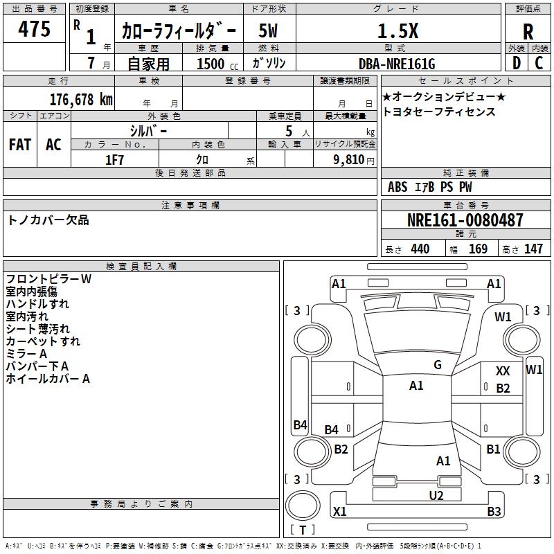 TOYOTA COROLLA FIELDER - лот 475