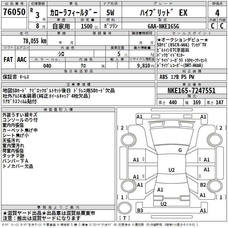 TOYOTA COROLLA FIELDER - лот 76050