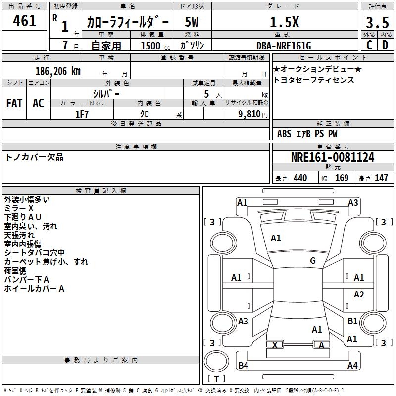 TOYOTA COROLLA FIELDER - лот 461